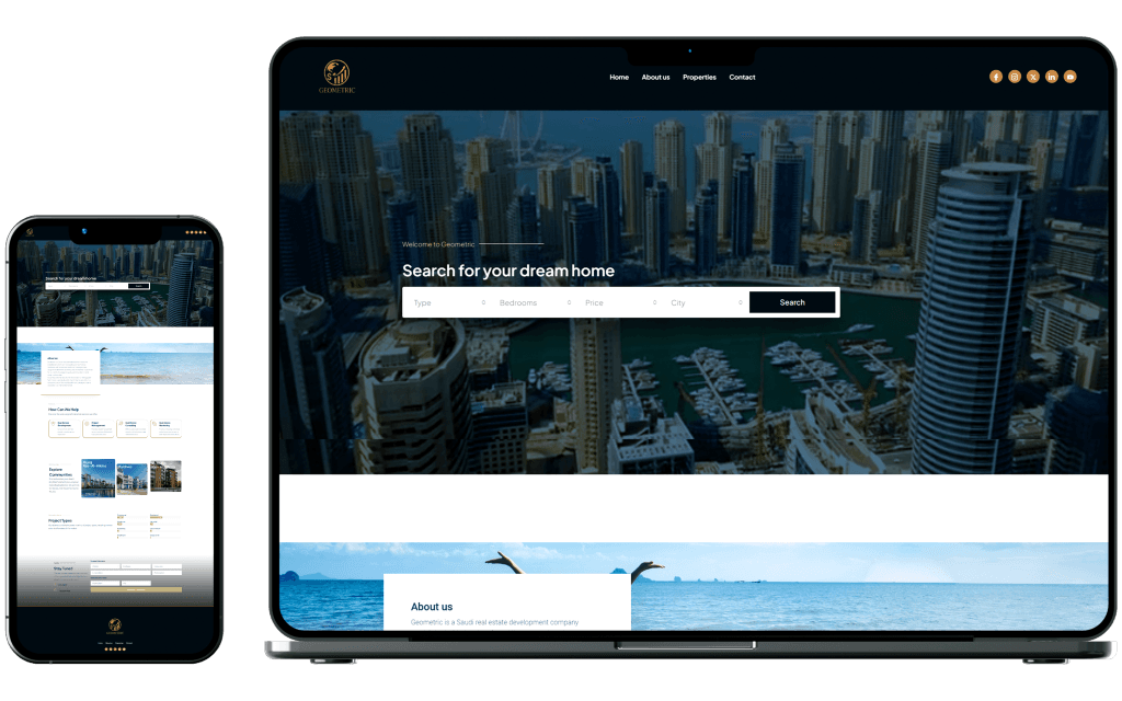 تعتبر Geometric Home أحد أهم منصات التسويق العقاري الفاخرة التي تستهدف العملاء المحليين والدوليين، والتي سعت لتعزيز وجودها الرقمي من خلال تصميم موقع إلكتروني ذو واجهة أنيقة تستعرض شقوق وفيلات للبيع أو الإيجار، مع تفاصيل واضحة وصور احترافية تجمع بين الأناقة والعملية لتسهيل اتخاذ القرار.